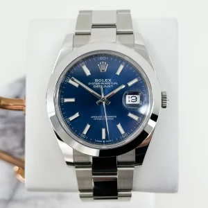 Rolex Datejust 41 Stainless Steel Blue Index Dial Smooth Bezel Jubilee Bracelet 126300