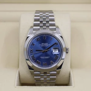 Rolex Datejust 41 Stainless Steel Blue Roman Dial Smooth Bezel Jubilee Bracelet 126300