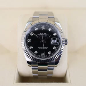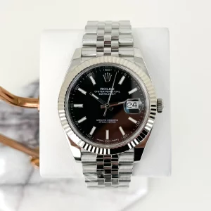 Rolex Datejust 41 Stainless Steel Black Index Dial Smooth Bezel Oyster Bracelet 126300 –