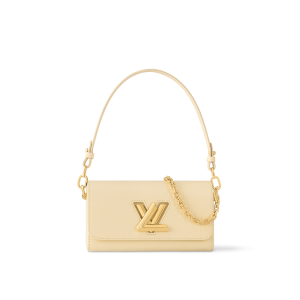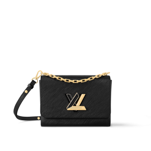 This arty version of the Twist MM handbag is fashioned from Epi leather, with its distinctive embossing, and is adorned with a brilliant decorative chain. The removable and adjustable chain is made of hand-enameled and nanogram-engraved links. The signature Twist lock features engraved Nanogram details