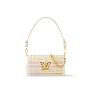 Inspired by ski wear, the padded Twist MM bag is made from 100% recycled ECONYL® nylon, making it extremely lightweight and body-friendly. The padding is also created from recycled materials. The bag comes with a woven strap that features a Monogram Flower ski pattern on one side and a sporty ‘Vuitton’ signature on the other.